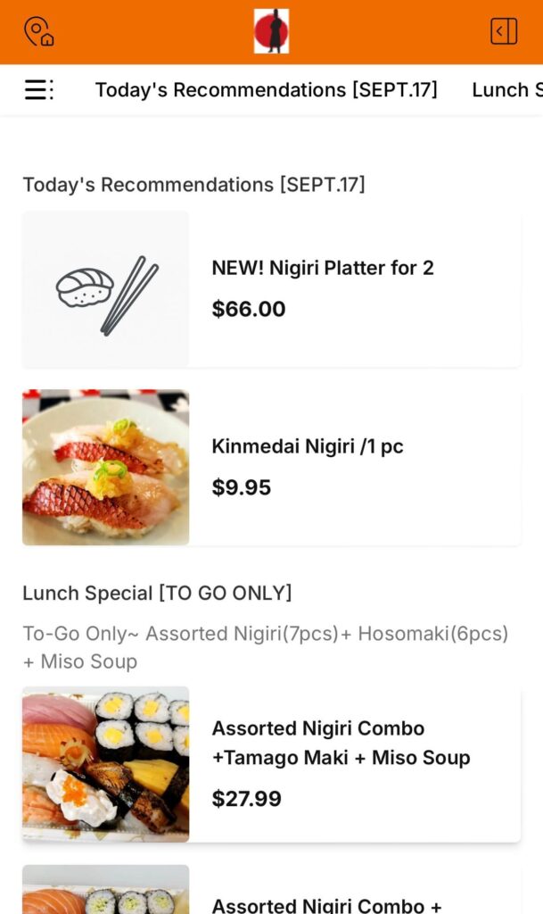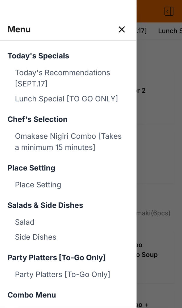 - Category Selector: Quickly browse sushi rolls, sashimi, and other menu items using the new category filter.